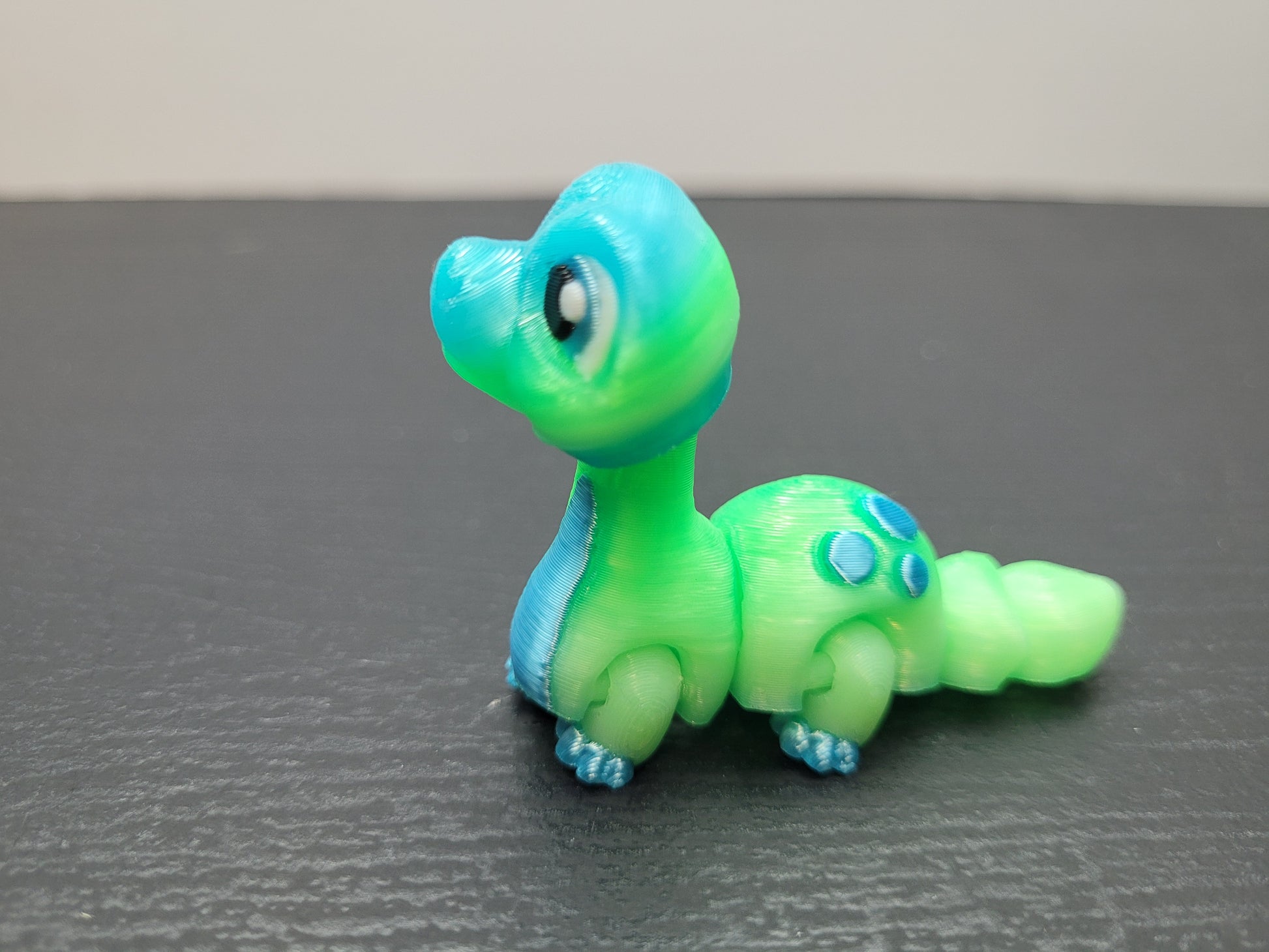 This long-necked brontosaurus wigglet gently sways and bends as you play with it. The articulated segments let it wiggle down a tabletop like a friendly prehistoric pet.