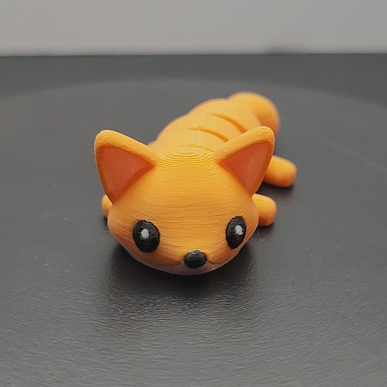 Fox Articulated Wigglet — a palm‑sized, 3D‑printed fidget friend with loose joints that flicks its ears and tail with a sly little shimmy. Give it a tap and watch it wiggle, sway, and noodle around your desk.