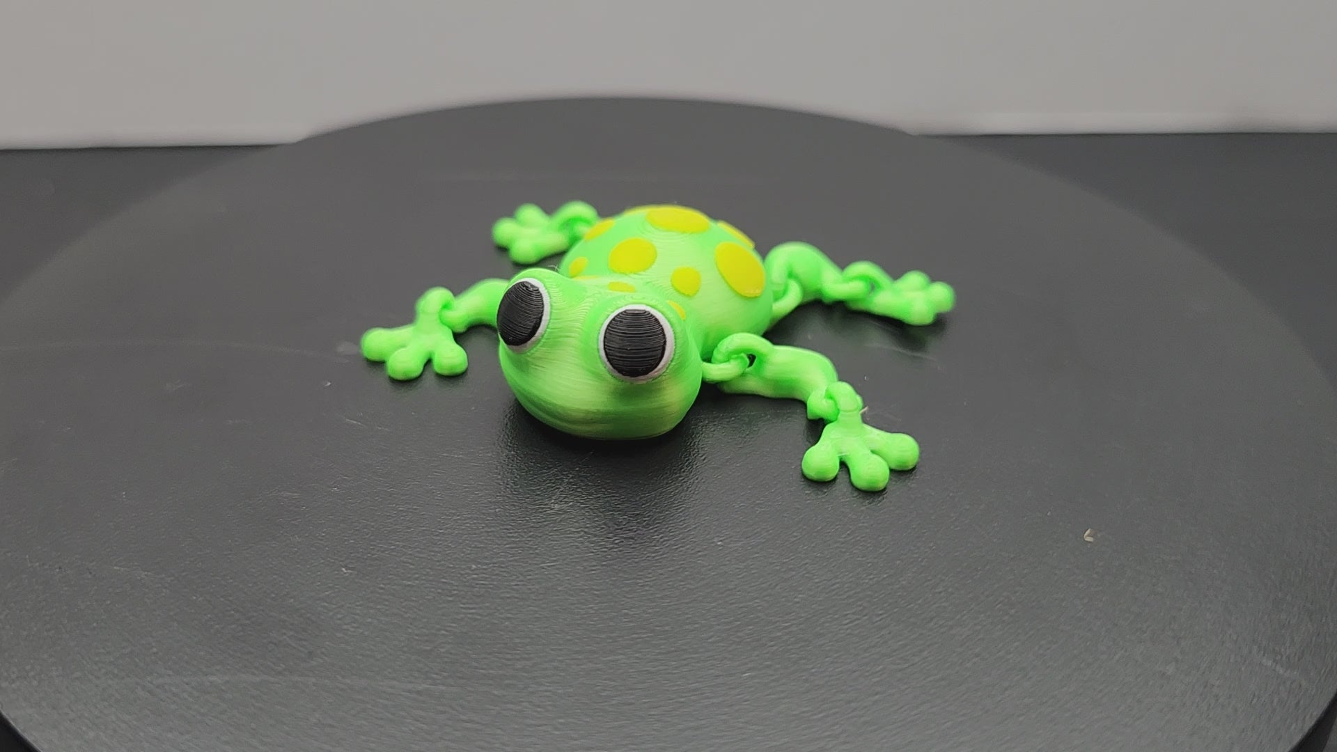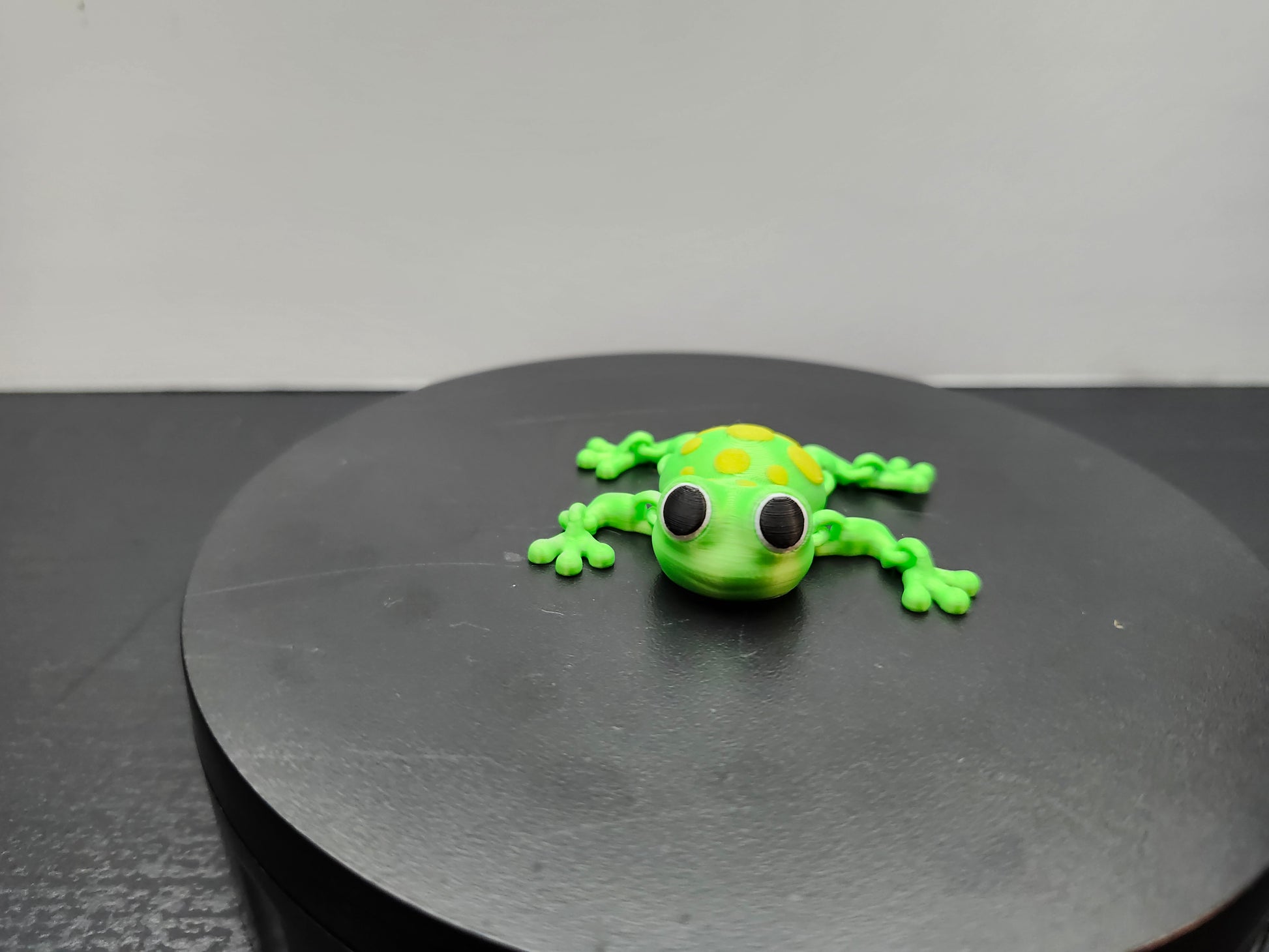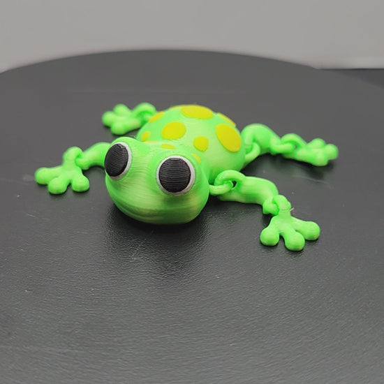 Frog Articulated Wigglet — a palm‑sized, 3D‑printed fidget friend with loose joints that boops forward with a goofy, springy shimmy. Give it a tap and watch it wiggle, sway, and noodle around your desk.