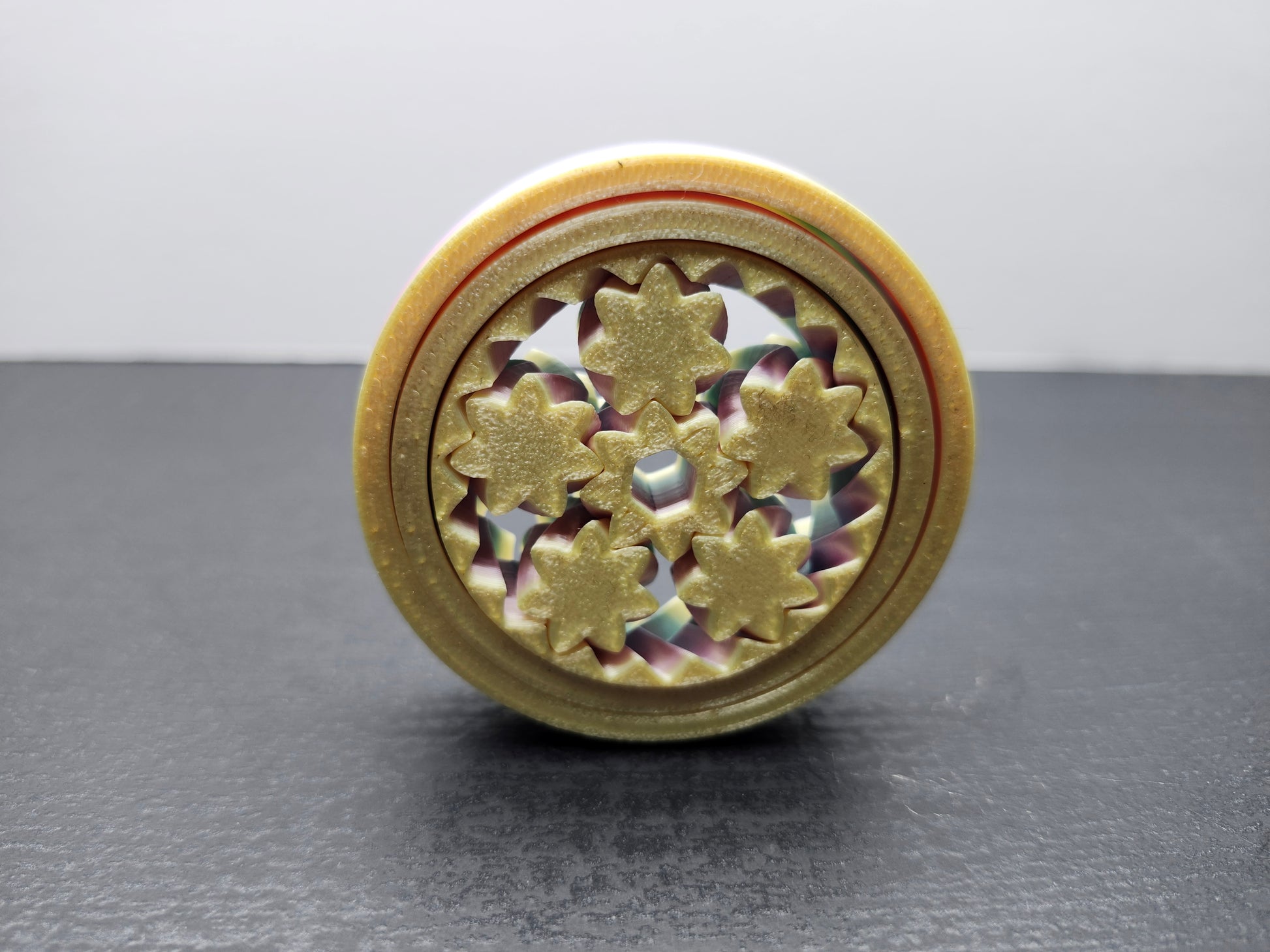Infinite Gyro with Gears — spin the interlocking rings and feel the hidden gear core whirr. It’s part sculpture, part meditation wheel.