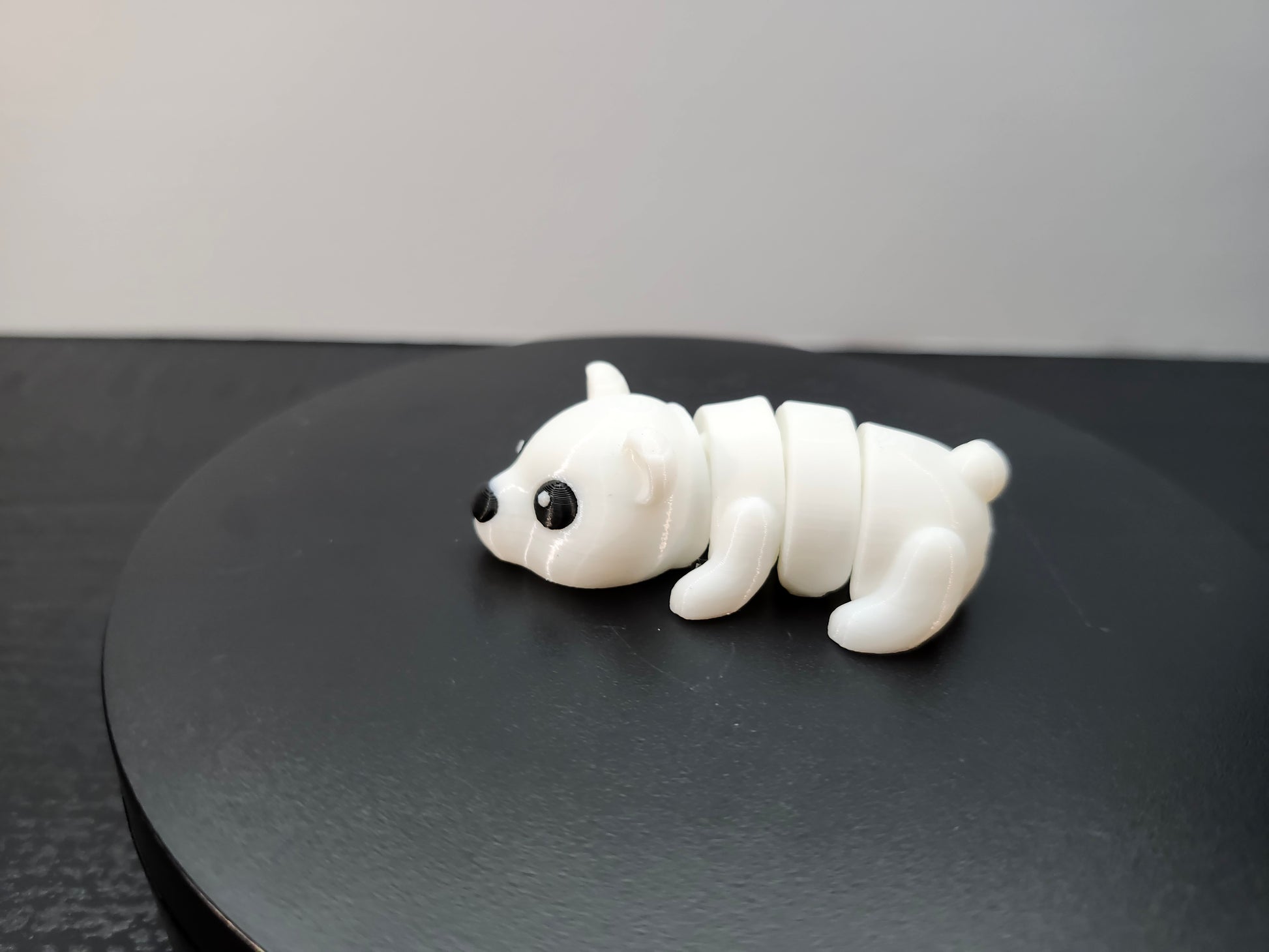 Polar Bear Articulated Wigglet — a palm‑sized, 3D‑printed fidget friend with loose joints that does an irresistible full‑body wiggle. Give it a tap and watch it wiggle, sway, and noodle around your desk.