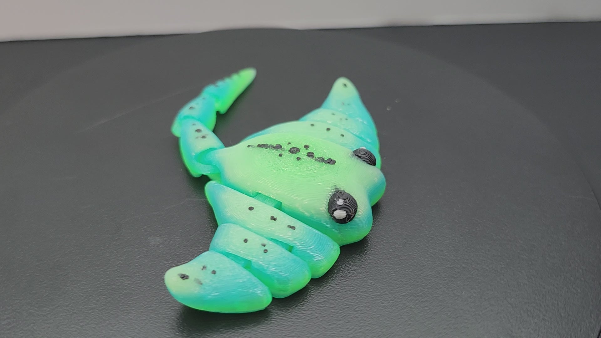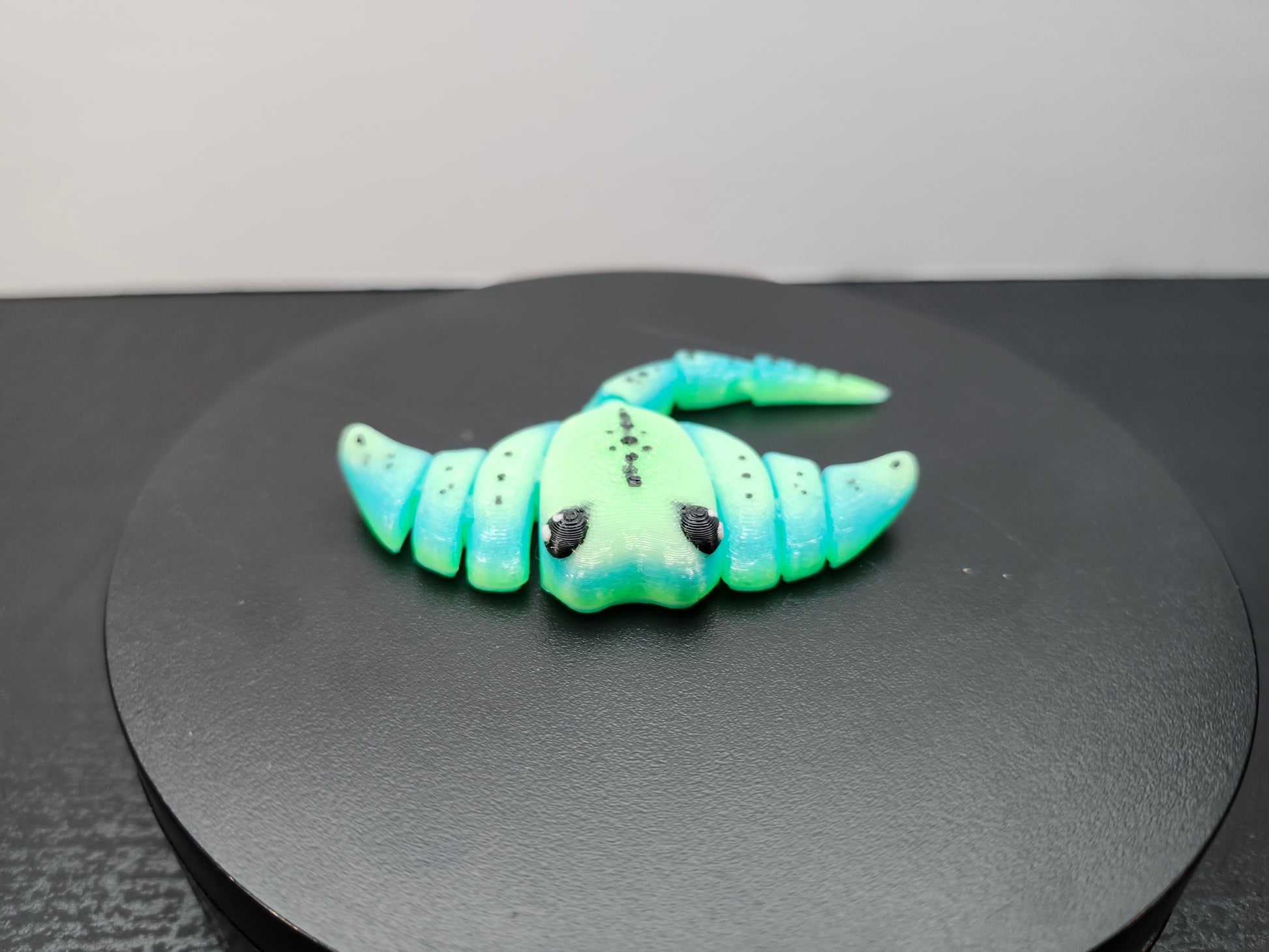 Sting Ray Articulated Wigglet — a palm‑sized, 3D‑printed fidget friend with loose joints that glides and ripples like a mini manta in motion. Give it a tap and watch it wiggle, sway, and noodle around your desk.